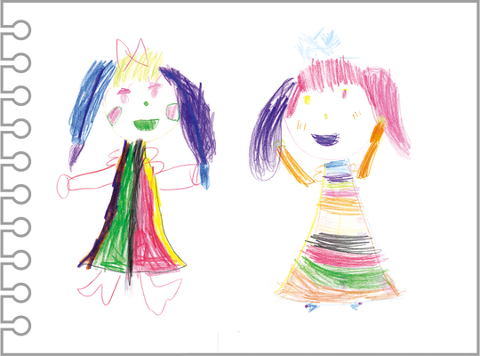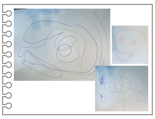 くるくる描いたものと、キャラクターのような絵がかわいらしいですね。