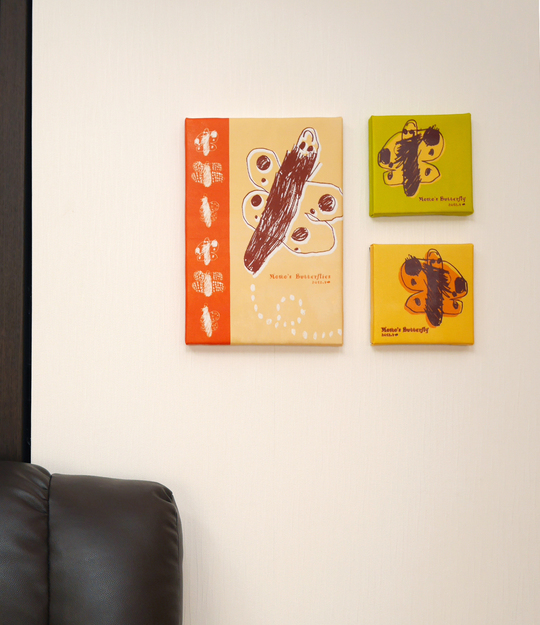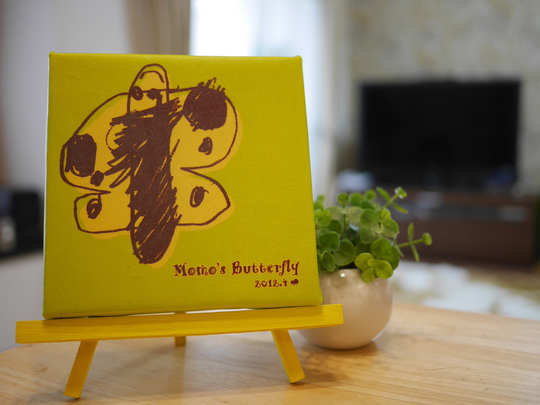 一部分を活かして、おしゃれなドアプレートに! 子どもが描いたとは思えない程、素敵です。