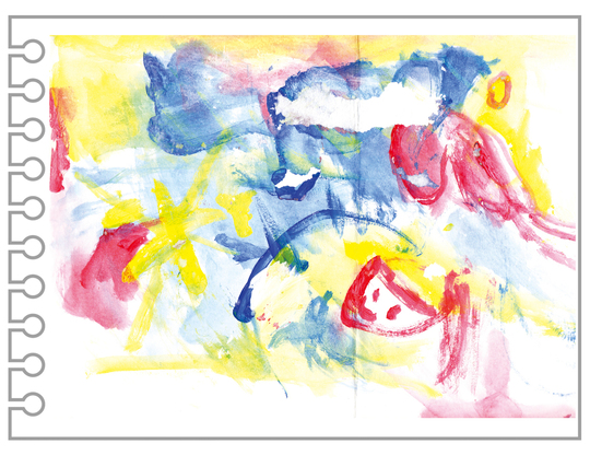 初めての水彩画です。好きな色で自由に描かれていますね。