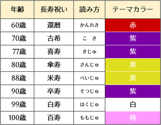 【長寿祝いの種類】