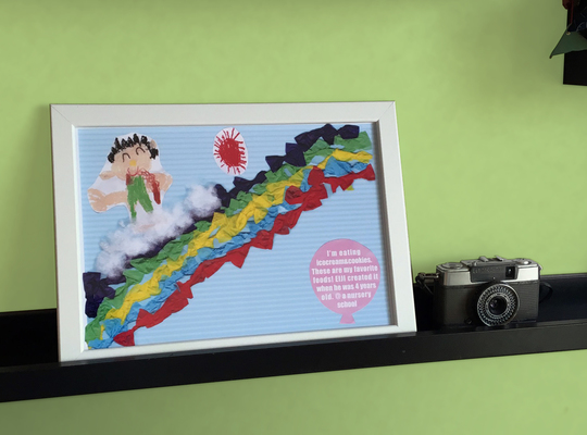 A.幼稚園で描いた作品を形に残したくてお願いしたのですが、実際出来上がりを見たら想像以上にかわいくてとっても感動しました!