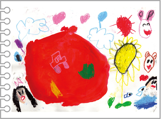 幼稚園のときに初めて絵の具を使って描いた絵とのことです。