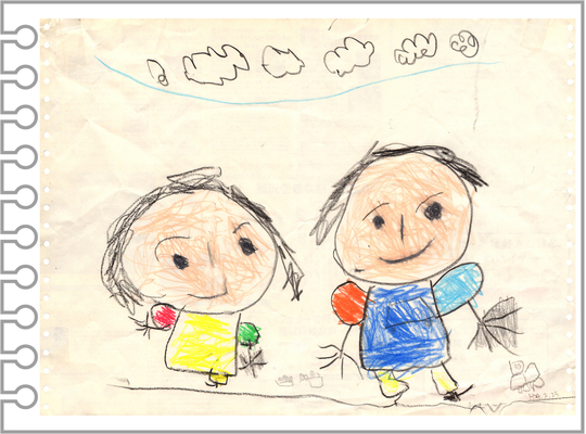 A.コピー用紙になんとなくお絵かきしていた、当時4歳の息子が描いたパパとママの絵でしたが、私が気に入っていて、テープを貼って飾っていました。